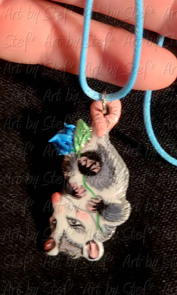 "Hand Crafted and Painted Polymer Clay Pendant - Blue Possum"