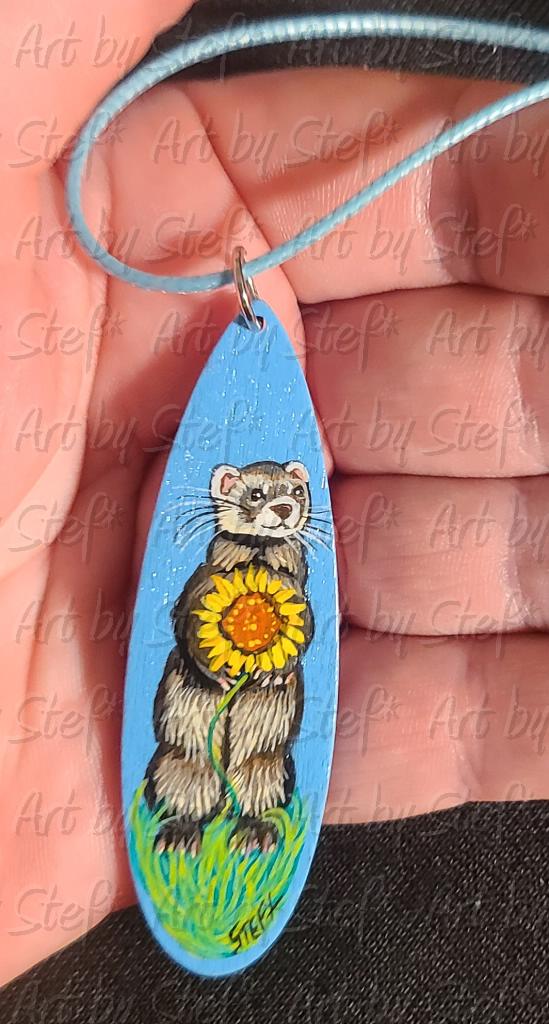 "Hand Crafted and Painted Shrinky Dink Pendant - Pumpkin Ferret"