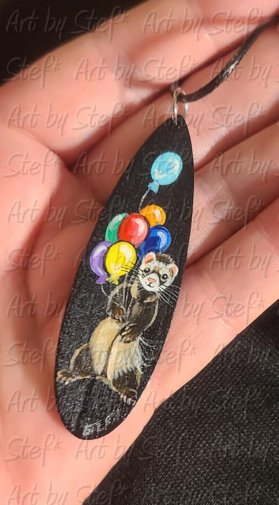 "Hand Crafted and Painted Polymer Clay Pendant - Infinity Ferrets"