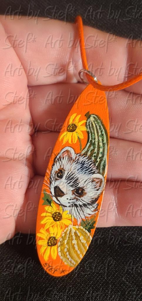 "Hand Crafted and Painted Shrinky Dink Pendant - Pumpkin Ferret"