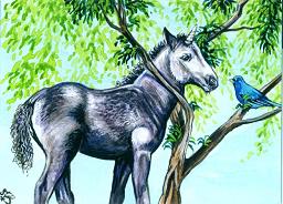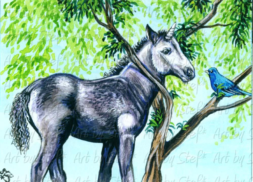 "Blue Roan Unicorn Foal Indigo Bunting"